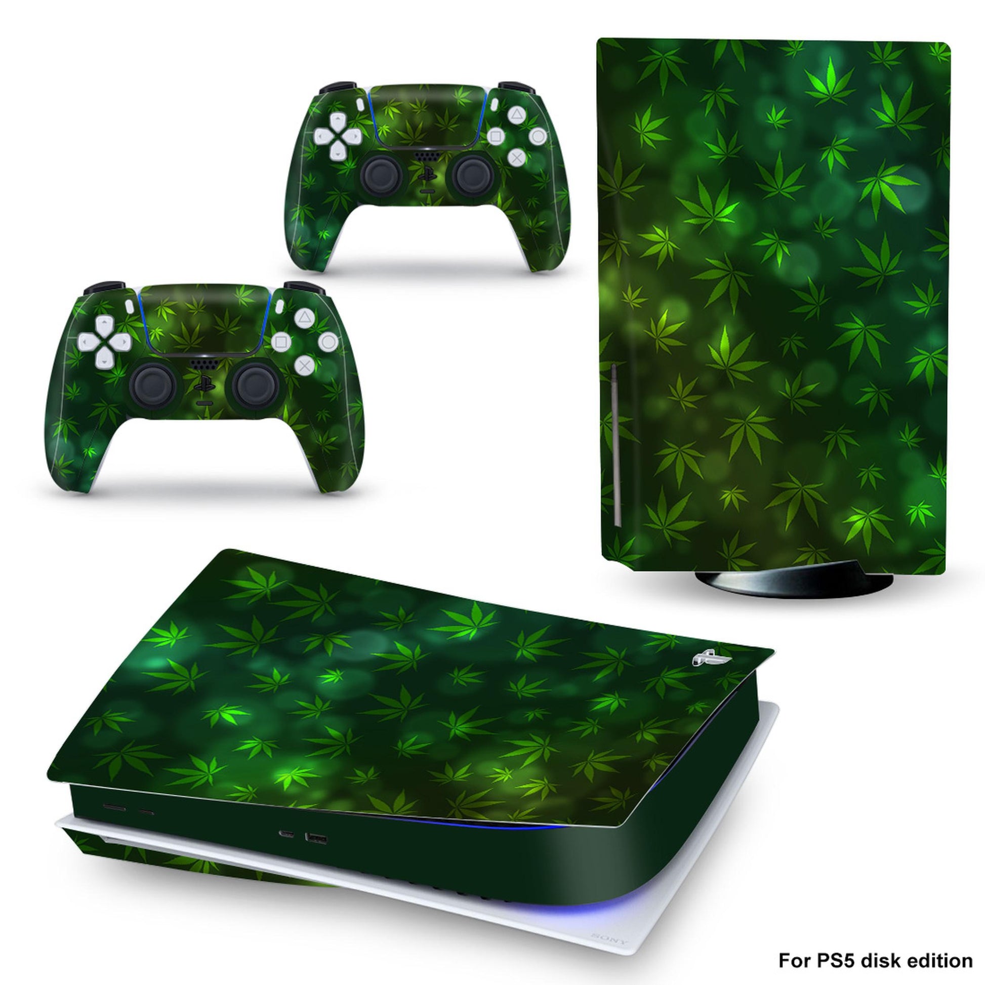 Green Leaves – Vinyl Skin für PS5 Disk Edition | Urban Style mit Leaf-Muster 🌌